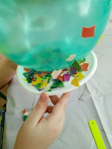 Опыт 2. Шарик,линейка, бумага и статическое электричество. Ребята натирали воздушный шарик и линейку о шерсть или волосы, после чего эти предметы начинали притягивать к себе лёгкие кусочки бумаги. Этот опыт познакомил детей с явлением статического электричества, возникающего при трении.