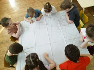 Опыт 2. Шарик,линейка, бумага и статическое электричество. Ребята натирали воздушный шарик и линейку о шерсть или волосы, после чего эти предметы начинали притягивать к себе лёгкие кусочки бумаги. Этот опыт познакомил детей с явлением статического электричества, возникающего при трении.