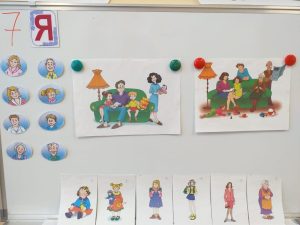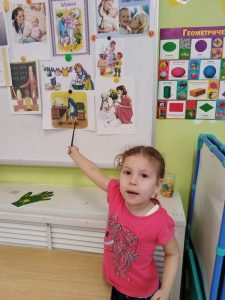 В игре «Кто кем приходится?» ребята с удивлением выяснили, что бабушка — это мамина мама и бабушка тоже когда-то была девочкой! Расположили картинки по порядку от маленькой малышки до бабушки и от мальчика-малыша до дедушки. Поиграли в игру «Чья вещь?», в которой учились правильно употреблять слова-прилагательные мамина, папина, бабушкин, дедушкин, Мишины, Сонины.