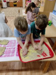 Каждый год группа № 5 под руководством педагога Голендовой Т.Н. участвует в акции ,,Покормите птиц зимой». И этот год не стал исключением. Родители активно включились в работу в рамках этого мероприятия : принесли корм для птиц . Педагогом был проведен мастер-класс для родителей группы, в ходе которого родители вместе с детьми вырезали формочки из плотного картона ,намазывали их клейстером ,сваренного из воды и муки, затем обмакивали в крупе, продевали ниточки ,выкладывали на просушку. После того как эко-кормушки просохнут, педагог совместно с детьми вывесит их участке,и дети с больши интересом будут наблюдать за птицами.