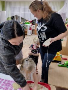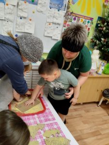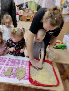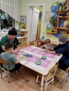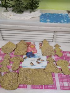 Каждый год группа № 5 под руководством педагога Голендовой Т.Н. участвует в акции ,,Покормите птиц зимой». И этот год не стал исключением. Родители активно включились в работу в рамках этого мероприятия : принесли корм для птиц . Педагогом был проведен мастер-класс для родителей группы, в ходе которого родители вместе с детьми вырезали формочки из плотного картона ,намазывали их клейстером ,сваренного из воды и муки, затем обмакивали в крупе, продевали ниточки ,выкладывали на просушку. После того как эко-кормушки просохнут, педагог совместно с детьми вывесит их участке,и дети с больши интересом будут наблюдать за птицами.
