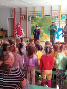 В рамках темы недели осторожного пешехода, ребята из театральной студии Дворца Культуры показали увлекательную сказку-спектакль о правилах дорожного движения. Наши воспитанники внимательно смотрели спектакль, отвечали на вопросы и играли в интересные игры. Это прекрасный пример того, как важно прививать детям знания о безопасности на дорогах в интересной и доступной форме. Спасибо организаторам и актерам за их труд и вдохновение!