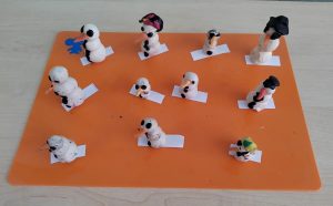 В ходе темы недели «Зимушка-зима» на занятии по художественно-эстетическому развитию воспитанники средней группы № 9 (педагог Ширгазина А.Г.) лепили из пластилина снеговика. Ребята увлечённо трудились над созданием своего первого зимнего персонажа. Каждый старался сделать своего снеговичка особенным: у кого-то получился забавный маленький малыш, у другого — серьёзный дедушка с длинной бородой, а третьи украсили своего героя яркими деталями. Занятие прошло весело и интересно, дети научились новому приёму лепки и получили массу удовольствия от процесса творчества.